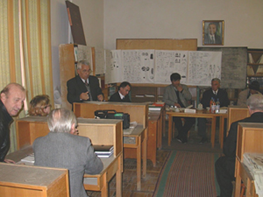 Institut ilmiy jamoasi navbatdagi hisobot yig’ilishidan so’ng mehmonlar bilan birga (2000 yillar)