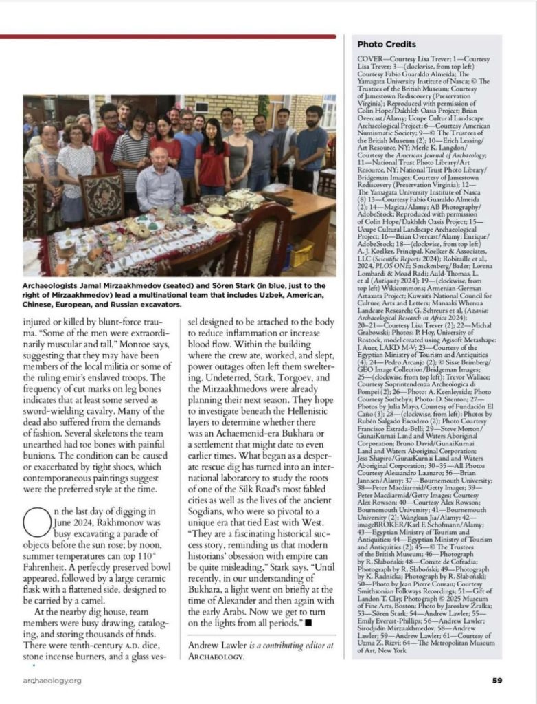Amerika Qo‘shma Shtatlaridagi nufuzli “Archaeology” jurnalining joriy yil yanvar sonida O‘zbekiston-Amerika qo‘shma arxeologik ekspeditsiyasining Buxoro viloyatida olib borilgan tadqiqotlariga bag‘ishlangan maqola chop etildi.